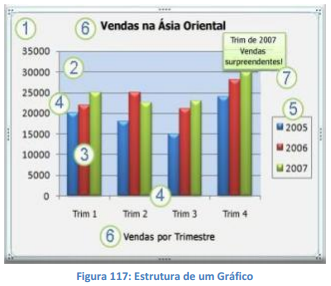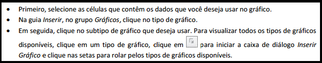 Números e estatísticas nem sempre são fáceis de serem interpretados, principalmente quando queremos apresenta-los. Uma estratégia muito utilizada para organizar visualmente informações numéricas e valores estatísticos é através da criação de Gráficos. Gráficos têm apelo visual e facilitam, para os usuários, a visualização de comparações, padrões e tendências nos dados. Por exemplo, em vez de ter de analisar várias colunas de números de planilha, você pode ver de relance se as vendas estão caindo ou subindo a cada trimestre, ou como as vendas reais se comparam às vendas estimadas. Você pode criar um gráfico como planilha individual, ou como um objeto incorporado a uma planilha.