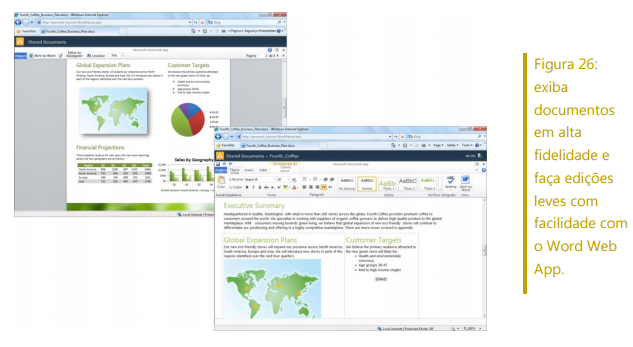 Salve seus documentos do Word online e acesse, edite e compartilhe-os de praticamente qualquer computador com conexão à Internet.13 Obtenha uma exibição de alta fidelidade online para documentos sofisticados que você cria no Word 2010 e faz edições leves com facilidade em trânsito usando algumas das mesmas ferramentas que conhece do Word.