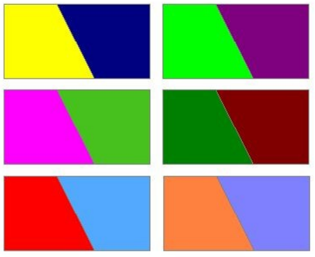 A cor além de produzir uma sensação de movimento, de expansão e de reflexão, pode também nos oferecer uma impressão estática. Mas ao relacionar uma cor a outras, dentro do espaço bidimensional, um outro fenômeno pode acontecer. Podemos observar que os valores apresentados por uma determinada cor se alteram quando ela passa a sofrer a influência de uma ou mais cores colocadas dentro de um mesmo espaço. O uso da cor complementar ao lado da primária produz efeitos que podem ter conseqüências diferentes, conforme a utilização que deles se fizer.
