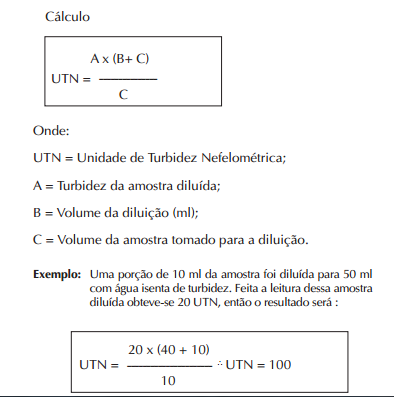 3º O atendimento ao percentual de aceitação do limite de turbidez, expresso na Tabela 2, deve ser verificado, mensalmente, com base em amostras no mínimo diárias para desinfecção ou filtração lenta e a cada quatro horas para filtração rápida, preferivelmente, em qualquer caso, no efluente individual de cada unidade de filtração.