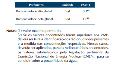 Tabela 4 - padrão de radioatividade para água potável: