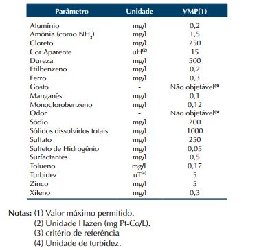 Art. 16. A água potável deve estar em conformidade com o padrão de aceitação de consumo expresso na Tabela 5, a seguir: