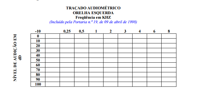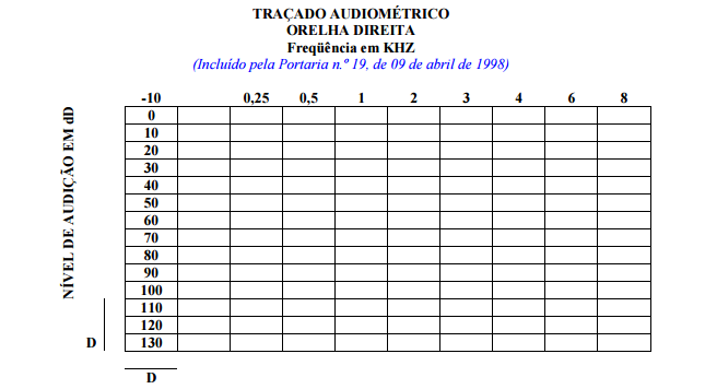 A distância entre cada oitiva de freqüência deve corresponder a uma variação de 20 dB no eixo do nível de audição (D).