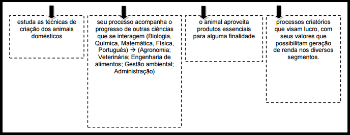 1) A zootecnia é a ciência que estuda a criação de animais com objetivos econômicos e envolve a formação nas áreas de melhoramento, nutrição, fisiologia, morfologia e anatomia de animais, e também de fatores relacionados à terra e a sua exploração sustentável, bem estar e comportamento animal, aspectos econômicos, sociais e ambientais, entre muitos outros.