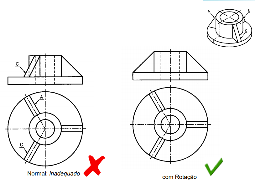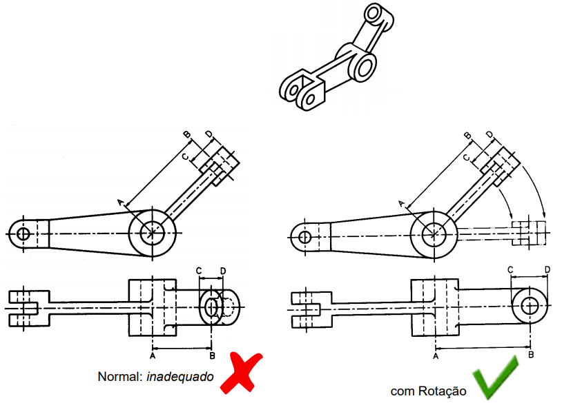 É rotacionar virtualmente um ou mais elementos de uma peça a fim de que as projeções ortogonais não fiquem distorcidas, sendo necessário existir um eixo de rotação na peça.
