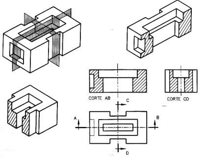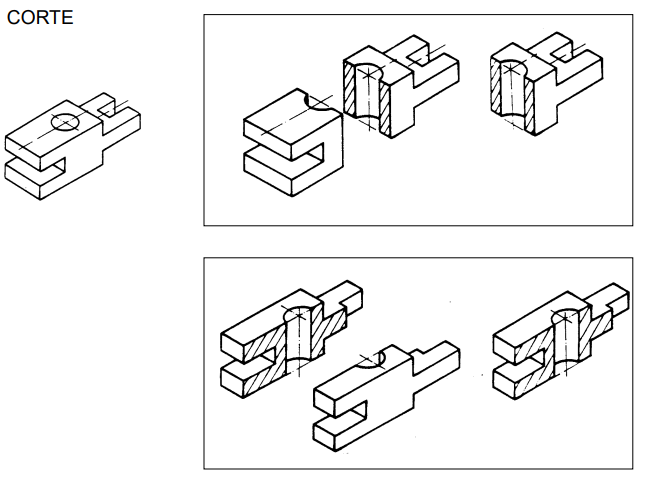 Corte é a denominação dada à representação de um produto secionada por um ou mais planos virtuais (planos secantes). No corte se representa tudo o que está atrás do plano secante, sendo que as linhas que estavam invisíveis nas vistas ortogonais passam a ficar visíveis.