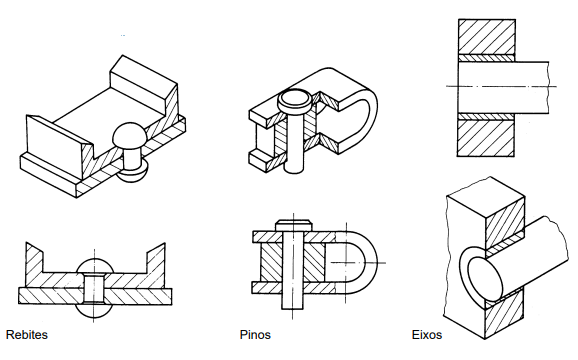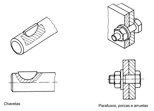 Alguns elementos de máquinas não são cortados quando atingido pelo plano secante.