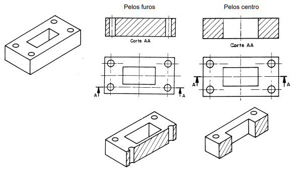 MEIO-CORTE - Duas representações em meio corte no mesmo desenho
