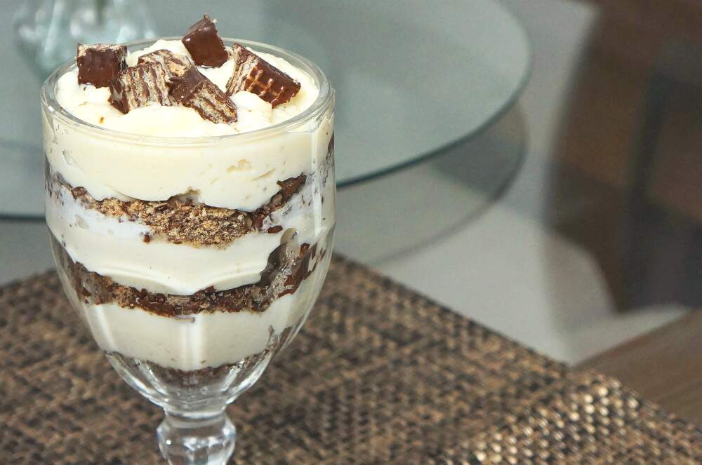 Coloque essa mistura por cima do creme e leve à geladeira até a hora de servir.