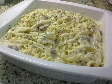 Coloque num refratário com o molho forrando a forma e cobrindo com ele.