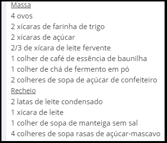 Ingredientes: Massa: