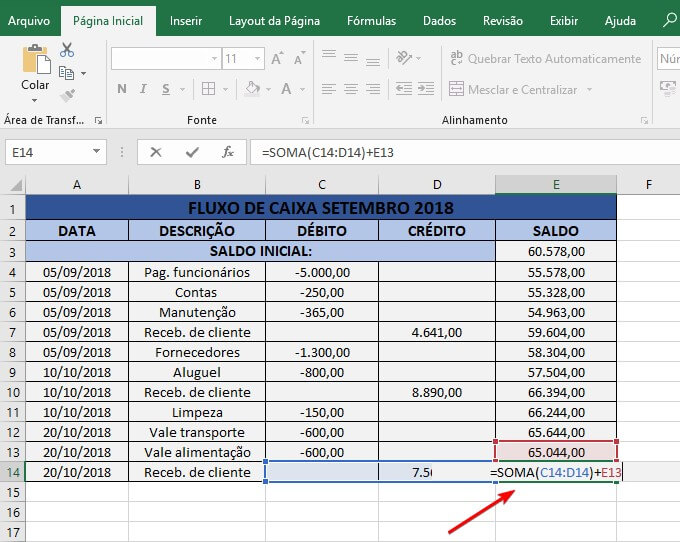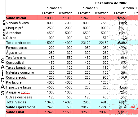 Continue acrescentando todos os novos lançamentos que podem surgir e corrija valores que sofreram alteração, como por exemplo aquela conta de luz com valor estimado. A diferença entre as entradas e saídas de dinheiro será o saldo do seu caixa, ou seja, quanto você tem para operar.