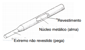É constituído de um núcleo metálico (alma), revestido de compostos orgânicos e minerais, ferro-liga, etc., com porcentagens definidas. O eletrodo pode ser revestido por extrusão ou simplesmente banhado, podendo ser fino, médio ou espesso.