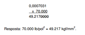 Para converter lb/pol 2 em kgf/mm 2 , deve-se multiplicar a quantidade de lb/pol 2 pela constante 0,0007031.