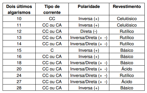 A seguir, temos a tabela AWS A. 51-78 que esclarece o significado dos últimos algarismos.