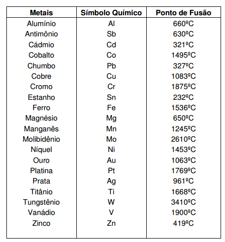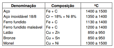 Ponto de Fusão de Algumas Ligas