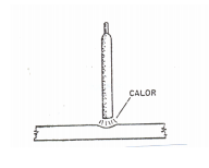 O arco elétrico produz calor intenso que funde a ponta do eletrodo e parte da peça tocada por este, formando a solda.