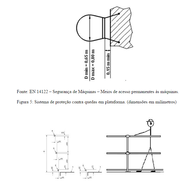 12.72. Para o sistema de proteção contra quedas em plataformas utilizadas em operações de abastecimento ou que acumulam sujidades, é permitida a adoção das dimensões da Figura 5 do Anexo III.