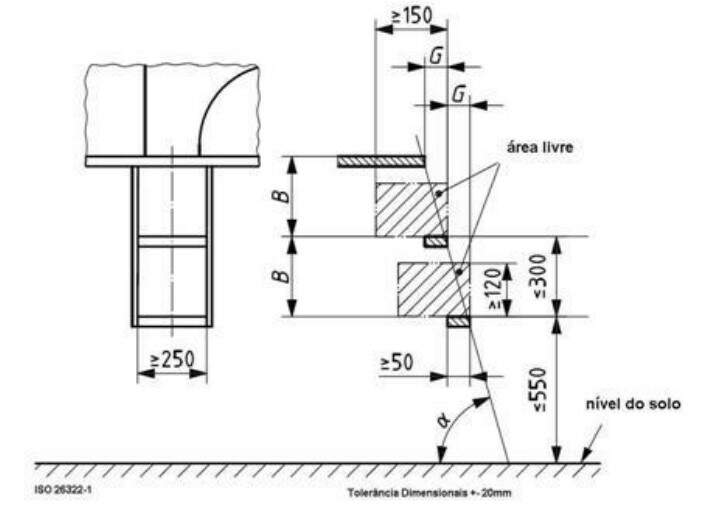 Figura 2 - Dimensões em milímetros dos meios de acesso de máquina autopropelida.