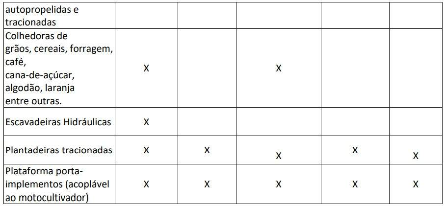 Quadro I - Máquinas excluídas.