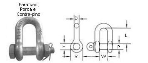 - Manilha: Um acessório para movimentação ou fixação de carga, formado por duas partes facilmente desmontáveis, consistindo em corpo e pino.