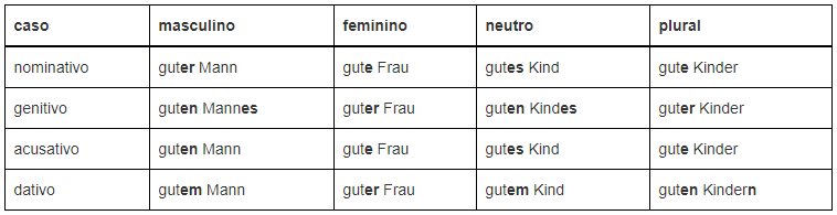 Observe que no genitivo masculino e neutro se coloca o -s ou -es no final do substantivo.