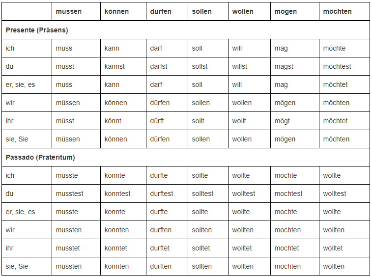 O mesmo se aplica ao construir frases com os verbos modais em alemão: