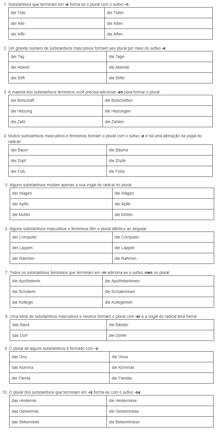 Há muitas maneiras de formar o plural em alemão: