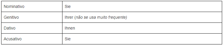 A declinação do pronome Sie: