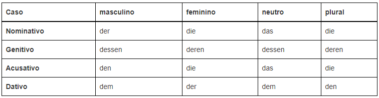 Os pronomes relativos também são declinados