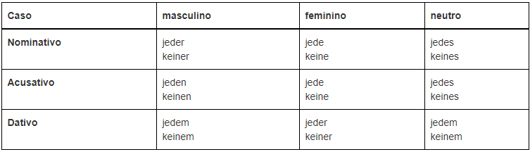 Ex.: keine Muter – nenhuma mãe, einige Kinder - algumas/umas crianças
