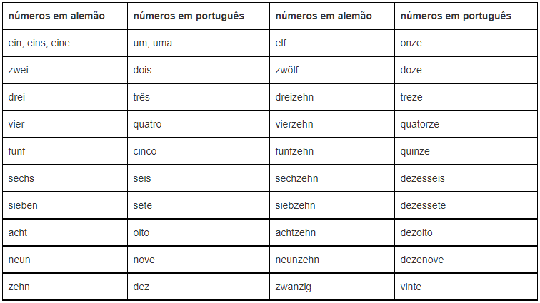Os numerais cardinais em alemão
