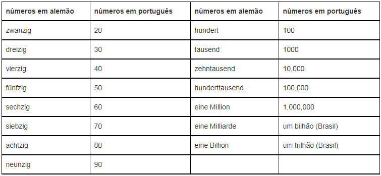 Uma das peculiaridades dos números em alemão é lê-los ao contrário, ou seja, primeiro a unidade e logo a dezena. Isso acontece a partir do número 13: dreizehn (três dez)