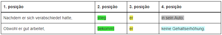 Se uma oração subordinada precede uma oração principal, a oração subordinada é tratada como se fosse a primeira unidade da oração principal. Em seguida, vem imediatamente o verbo da oração principal.