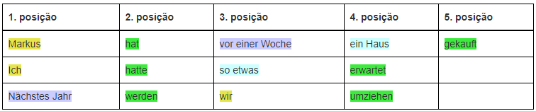 A regra básica da ordem das palavras nas orações principais em alemão é que o verbo vem sempre em segundo lugar.
