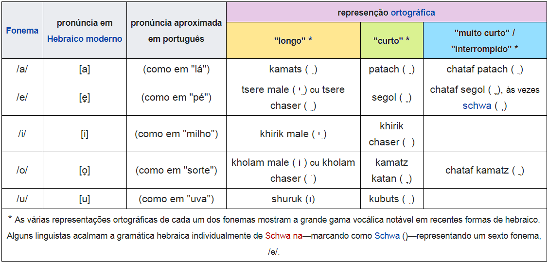 O hebraico também mudou. A diferença entre o hebraico de hoje e o de três mil anos atrás é que o antigo era um abjadou seja, não possuía vogais para formar sílabas. As vogais (Nekodot) foram os sinais diacríticos inventados pelos rabinos para facilitar na pronúncia de textos muito antigos e posteriormente desativados, nos meios de comunicação atuais.