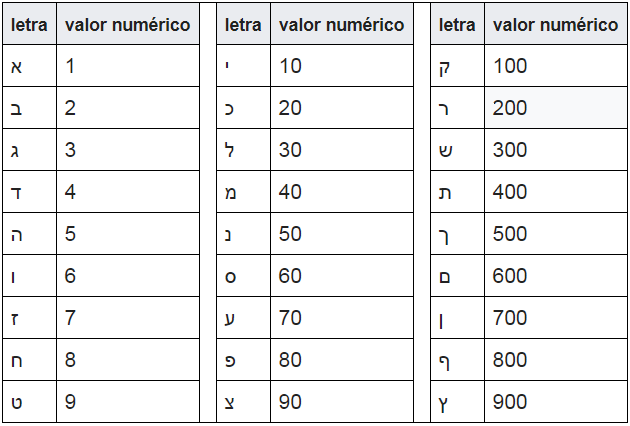 Valor numérico das letras