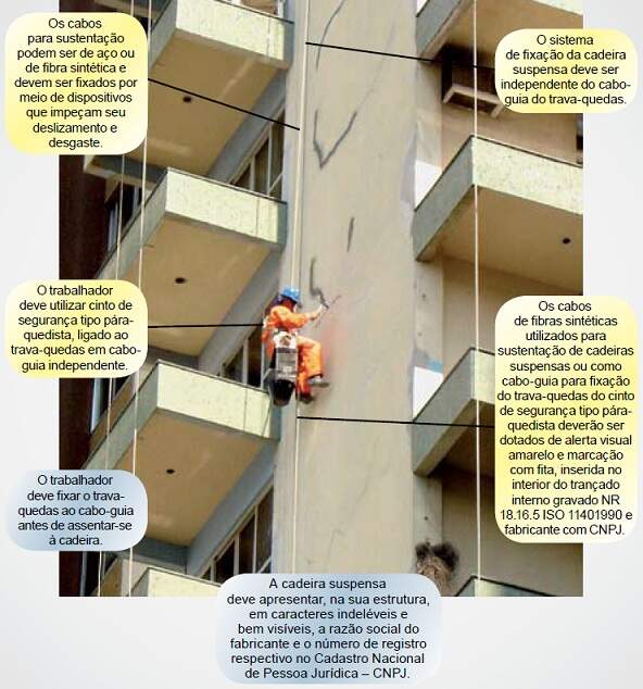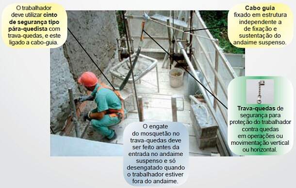 c) todas as pessoas que estiverem trabalhando no equipamento utilizem dispositivos de proteção contra quedas e outros riscos.