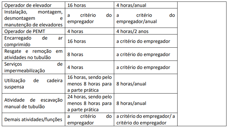 2.2 O conteúdo dos treinamentos periódico e eventual será definido pelo empregador e deve contemplar os princípios básicos de segurança compatíveis com o equipamento e a atividade a ser desenvolvida no local de trabalho.