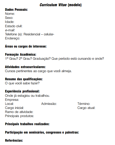 Muitas vezes os candidatos perguntam se há algum modelo específico de currículo, um modelo padrão facilita a sua análise.