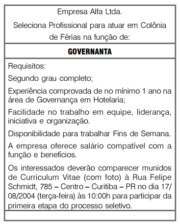 - Observe se o candidato possui alguma experiência anterior (nem sempre é necessário ter experiência anterior).