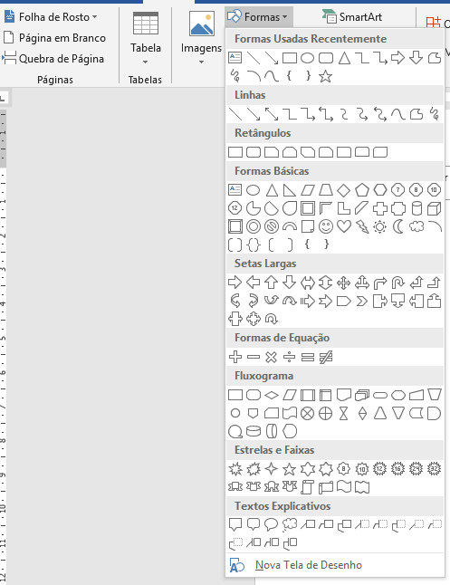No Word podemos inserir diversas formas geométricas, que nos auxiliam profundamente quando necessitamos criar elementos que unem textos com gráficos (como um infográfico, um organograma, por exemplo).