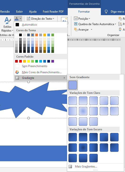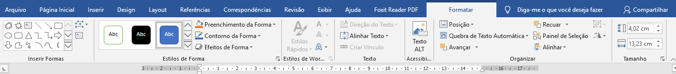 Ao inserirmos uma forma e a selecionarmos, teremos acesso à Guia Formatar da barra Ferramentas de Desenho, com ações de formatação.