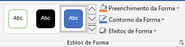 Em Estilos de Forma são apresentadas várias opções já formatadas para o estilo da forma inserida, mas se você preferir, poderá utilizar os botões de Preenchimento, Contorno e Efeitos de Forma.