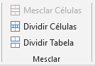 Mesclar Células significa tornar duas ou mais células como uma só. Como não há células selecionadas, o comando fica desativado. Se a célula está mesclada, podemos Dividir Células. O último comando, Dividir Tabela, tem por objetivo tornar um tabela em duas, tendo como referência a linha onde o cursor está.