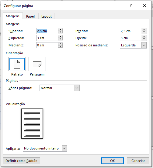 • Normal: significa que todas as páginas do documento terão a mesma configuração de margens.