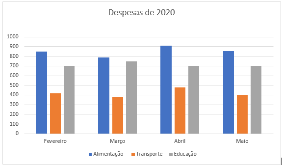 O título do gráfico foi alterado simplesmente clicando nele, selecionando o texto e alterando-o para o desejado (de “Título do Gráfico” para “Despesas em 2020”).
