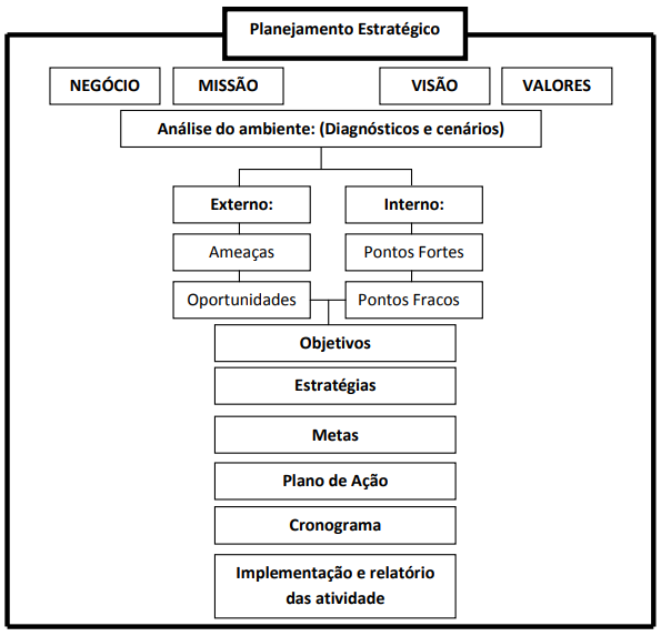 Para Chiavenato o planejamento estratégico procura detalhar o como fazer isso para alcançar determinados objetivos, isso nada mais é, do que “estabelecer o que a empresa deve fazer antes da necessária ação [...]” (CHIAVENATO). Ainda para o autor Chiavenato o planejamento estratégico envolve essas etapas mencionadas abaixo que são: identificação dos objetivos, análise organizacional (interna) e ambiental (externa), formulação de estratégias, construção do planejamento estratégico e implementação. No nível estratégico o planejamento é realizado a longo prazo.