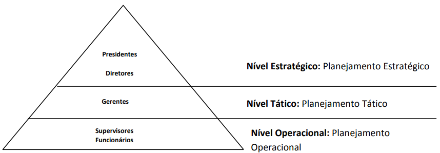 Quando se aborda o planejamento não se pode deixar de mencionar os três níveis de planejamento que são: estratégico, tático e operacional conforme mostra a figura 1 abaixo: