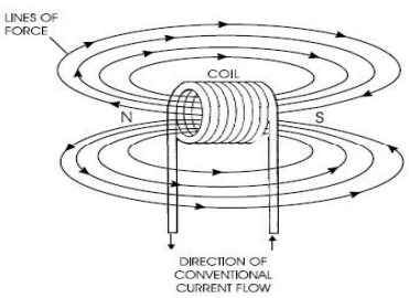 O enrolamento primário está conectado à bateria, que por sua vez lhe aplica uma baixa tensão aquando do fecho do circuito através da chave de ignição. Quando a corrente flui pelo enrolamento primário é criado um campo magnético muito forte à volta deste, como se pode ver na figura a seguir.